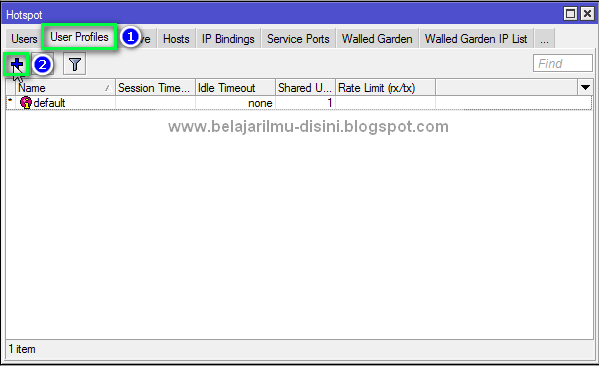 3. Lalu buat profile user dengan memasukkan Name dan Rate Limit yang ingin digunakan. Untuk lebih jelasnya lihat petunjuk pada gambar di bawah ini.