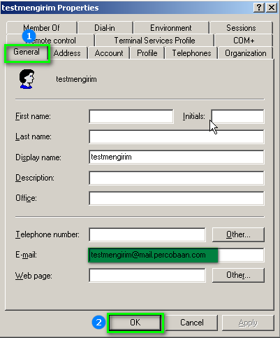 Tampilan setelah membuat akun user subdomain mail Windows Server 2003 |